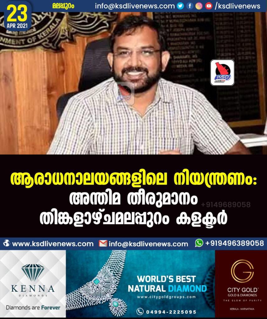 ആരാധനാലയങ്ങളിലെ നിയന്ത്രണം: അന്തിമ തീരുമാനം തിങ്കളാഴ്ച-മലപ്പുറം കളക്ടര്