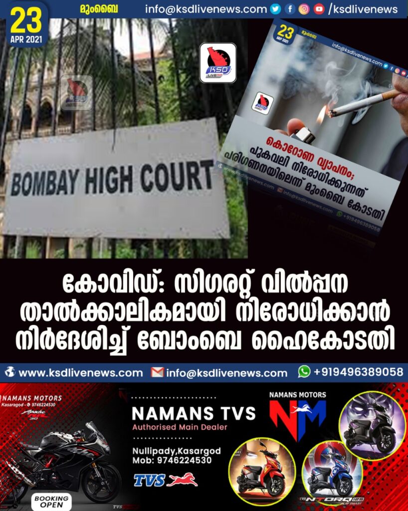കോവിഡ്: സിഗരറ്റ് വില്പ്പന താല്ക്കാലികമായി നിരോധിക്കാന് നിര്ദേശിച്ച് ബോംബെ ഹൈകോടതി