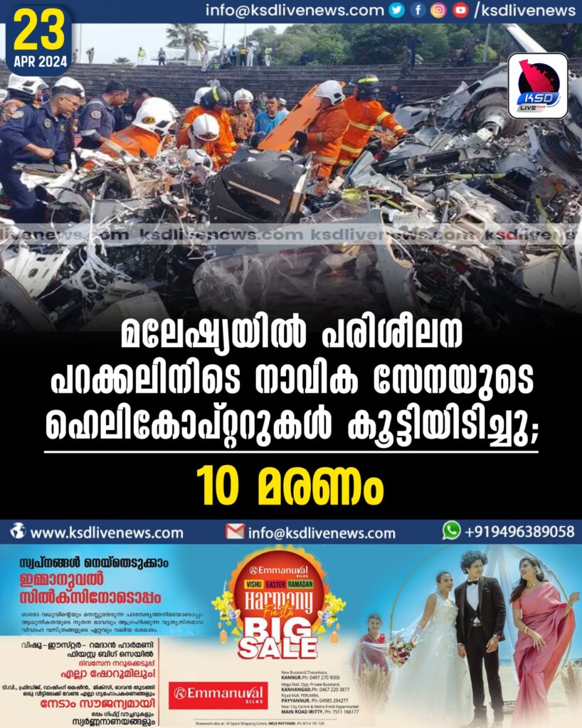 മലേഷ്യയിൽ പരിശീലന പറക്കലിനിടെ നാവിക സേനയുടെ ഹെലികോപ്റ്ററുകൾ കൂട്ടിയിടിച്ചു; 10 മരണം