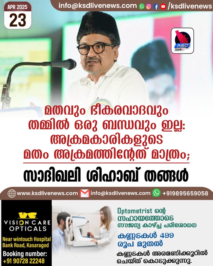 മതവും ഭീകരവാദവും തമ്മിൽ ഒരു ബന്ധവും ഇല്ല, അക്രമകാരികളുടെ മതം അക്രമത്തിന്റേത് മാത്രം; സാദിഖലി ശിഹാബ് തങ്ങൾ