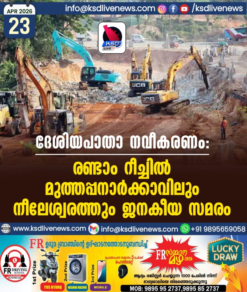 ദേശിയപാതാ നവീകരണം:രണ്ടാം റീച്ചിൽ മുത്തപ്പനാർക്കാവിലും നീലേശ്വരത്തും ജനകീയ സമരം
