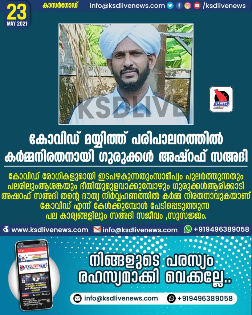 കോവിഡ് മയ്യിത്ത് പരിപാലനത്തിൽ കർമ്മനിരതനായി ഗുരുക്കൾ അഷ്റഫ് സഅദി