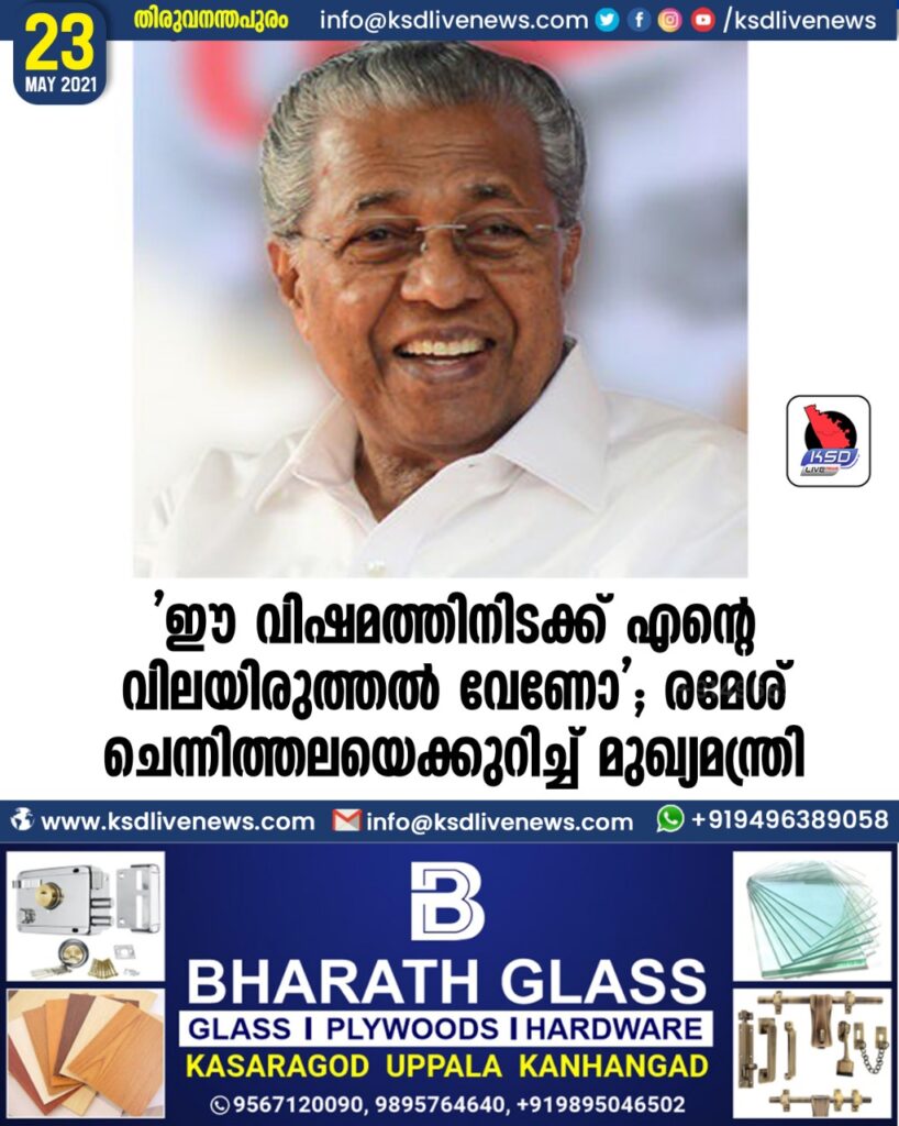 ഈ വിഷമത്തിനിടക്ക് എന്റെ വിലയിരുത്തല് വേണോ’; രമേശ് ചെന്നിത്തലയെക്കുറിച്ച് മുഖ്യമന്ത്രി