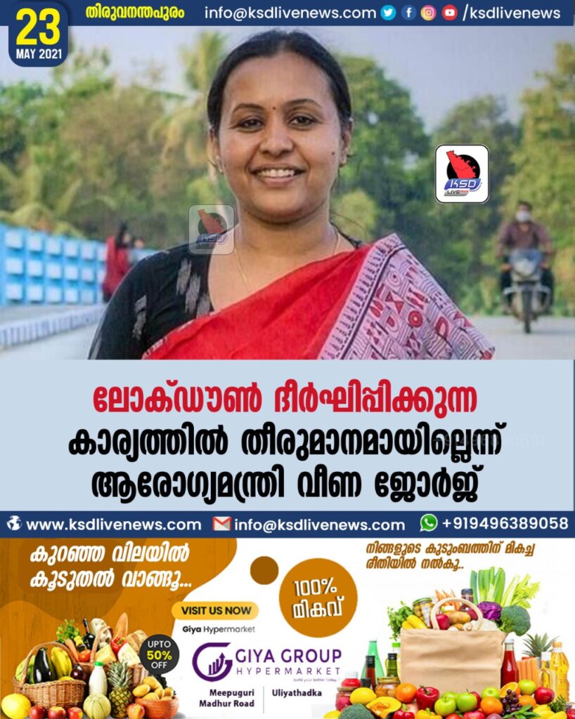 ലോക്ഡൗണ് ദീര്ഘിപ്പിക്കുന്ന കാര്യത്തില് തീരുമാനമായില്ലെന്ന് ആരോഗ്യമന്ത്രി