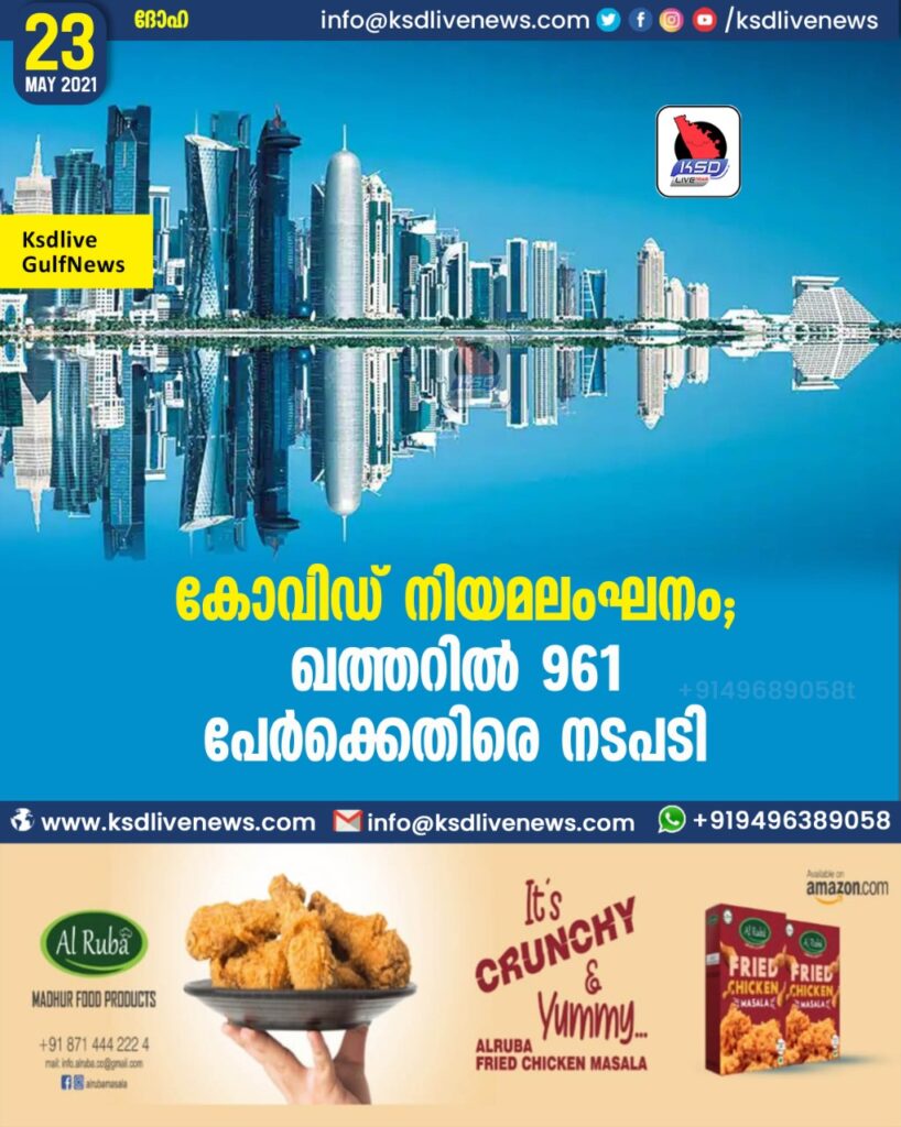 കൊവിഡ് നിയമലംഘനം; ഖത്തറില് 961 പേര്ക്കെതിരെ നടപടി