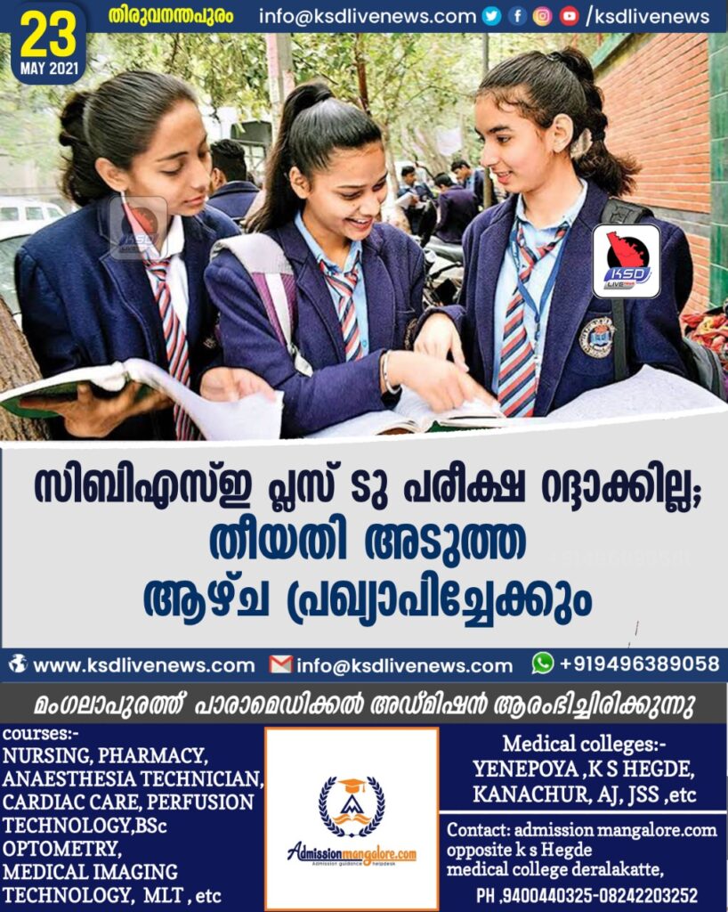 സിബിഎസ്ഇ പ്ലസ് ടു പരീക്ഷ റദ്ദാക്കില്ല; തീയതി അടുത്ത ആഴ്ച പ്രഖ്യാപിച്ചേക്കും
