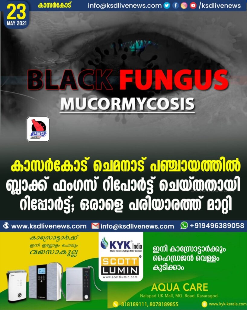 കാസർകോട് ചെമനാട് പഞ്ചായത്തിൽ ബ്ലാക്ക് ഫംഗസ് റിപോർട്ട് ചെയ്തതായി സൂചന ഒരാളെ പരിയാരത്ത് മാറ്റി?