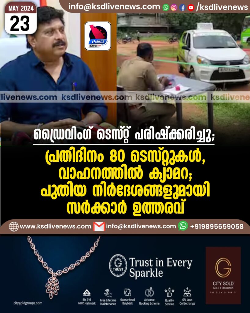 ഡ്രൈവിംഗ് ടെസ്റ്റ് പരിഷ്ക്കരിച്ചു; പ്രതിദിനം 80 ടെസ്റ്റുകൾ, വാഹനത്തിൽ ക്യാമറ; പുതിയ നിർദേശങ്ങളുമായി സർക്കാർ ഉത്തരവ്