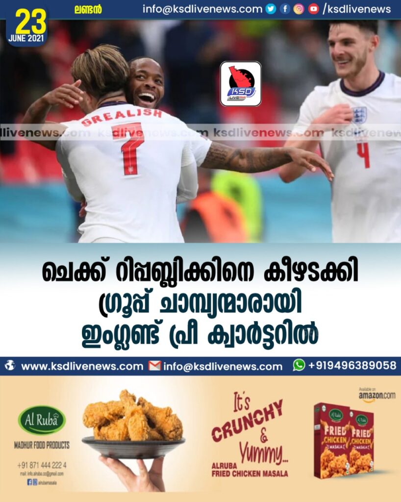 ചെക്ക് റിപ്പബ്ലിക്കിനെ കീഴടക്കി ഗ്രൂപ്പ് ചാമ്പ്യന്മാരായി ഇംഗ്ലണ്ട് പ്രീ ക്വാര്ട്ടറില്