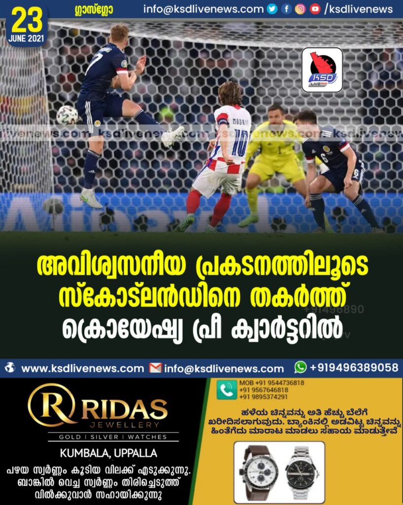 അവിശ്വസനീയ പ്രകടനത്തിലൂടെ സ്കോട്ലന്ഡിനെ തകര്ത്ത് ക്രൊയേഷ്യ പ്രീ ക്വാര്ട്ടറില്