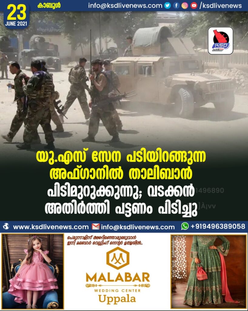യു.എസ് സേന പടിയിറങ്ങുന്ന അഫ്ഗാനില് താലിബാന് പിടിമുറുക്കുന്നു; വടക്കന് അതിര്ത്തി പട്ടണം പിടിച്ചു
