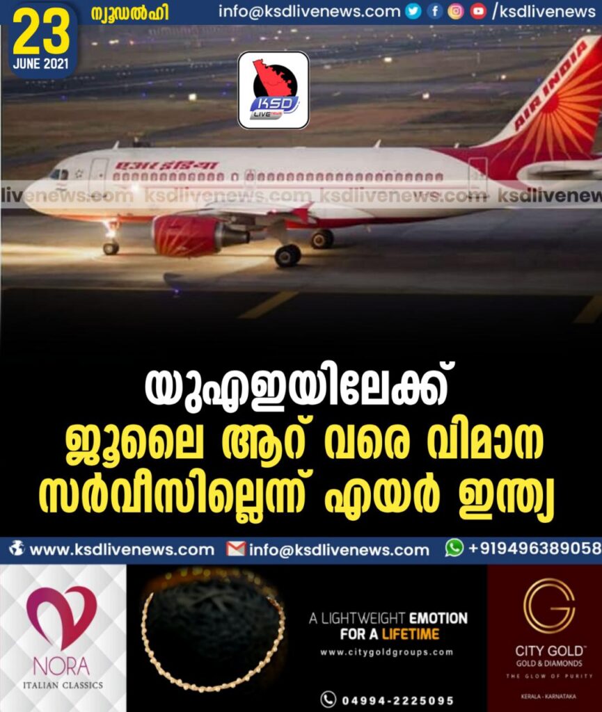 യുഎഇയിലേക്ക് ജൂലൈ ആറ് വരെ വിമാന സര്വീസില്ലെന്ന് എയര് ഇന്ത്യ