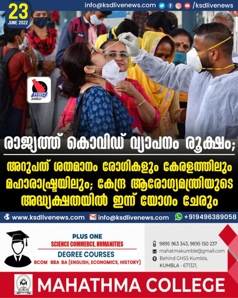 രാജ്യത്ത് കൊവിഡ് വ്യാപനം രൂക്ഷം, അറുപത് ശതമാനം രോഗികളും കേരളത്തിലും മഹാരാഷ്ട്രയിലും; കേന്ദ്ര ആരോഗ്യമന്ത്രിയുടെ അദ്ധ്യക്ഷതയില്‍ ഇന്ന് യോഗം ചേരും