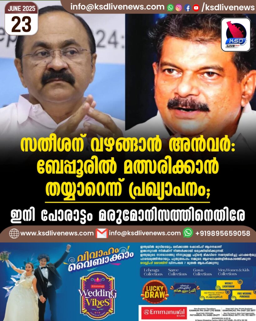 സതീശന് വഴങ്ങാൻ അൻവർ, ബേപ്പൂരിൽ മത്സരിക്കാൻ തയ്യാറെന്ന് പ്രഖ്യാപനം; ഇനി പോരാട്ടം മരുമോനിസത്തിനെതിരേ