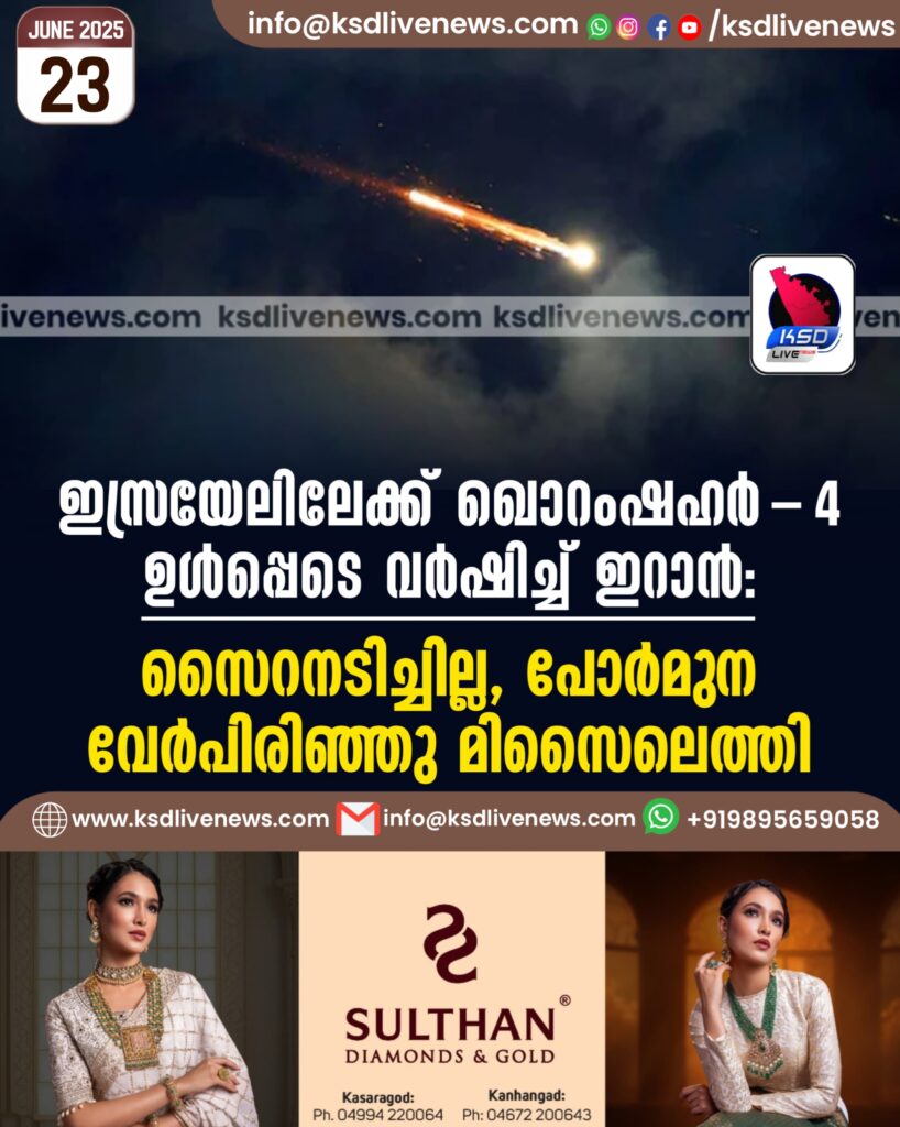 ഇസ്രയേലിലേക്ക് ഖൊറംഷഹർ-4 ഉൾപ്പെടെ വർഷിച്ച് ഇറാൻ: സൈറനടിച്ചില്ല, പോര്മുന വേർപിരിഞ്ഞു മിസൈലെത്തി