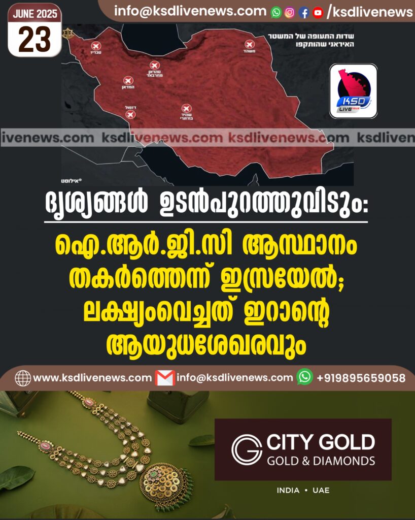 ദൃശ്യങ്ങൾ ഉടൻപുറത്തുവിടും: ഐ.ആർ.ജി.സി ആസ്ഥാനം തകർത്തെന്ന് ഇസ്രയേൽ; ലക്ഷ്യംവെച്ചത് ഇറാന്റെ ആയുധശേഖരവും