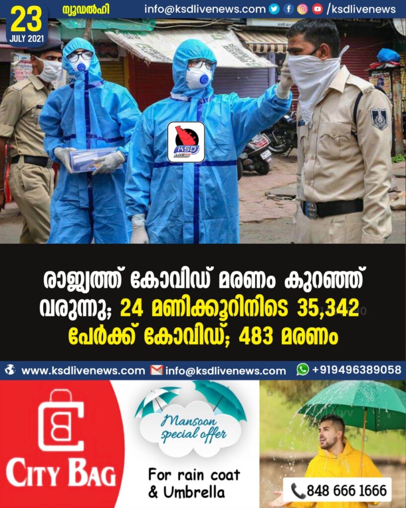 രാജ്യത്ത് കോവിഡ് മരണം കുറഞ്ഞ് വരുന്നു; 24 മണിക്കൂറിനിടെ 35,342 പേർക്ക് കോവിഡ്; 483 മരണം
