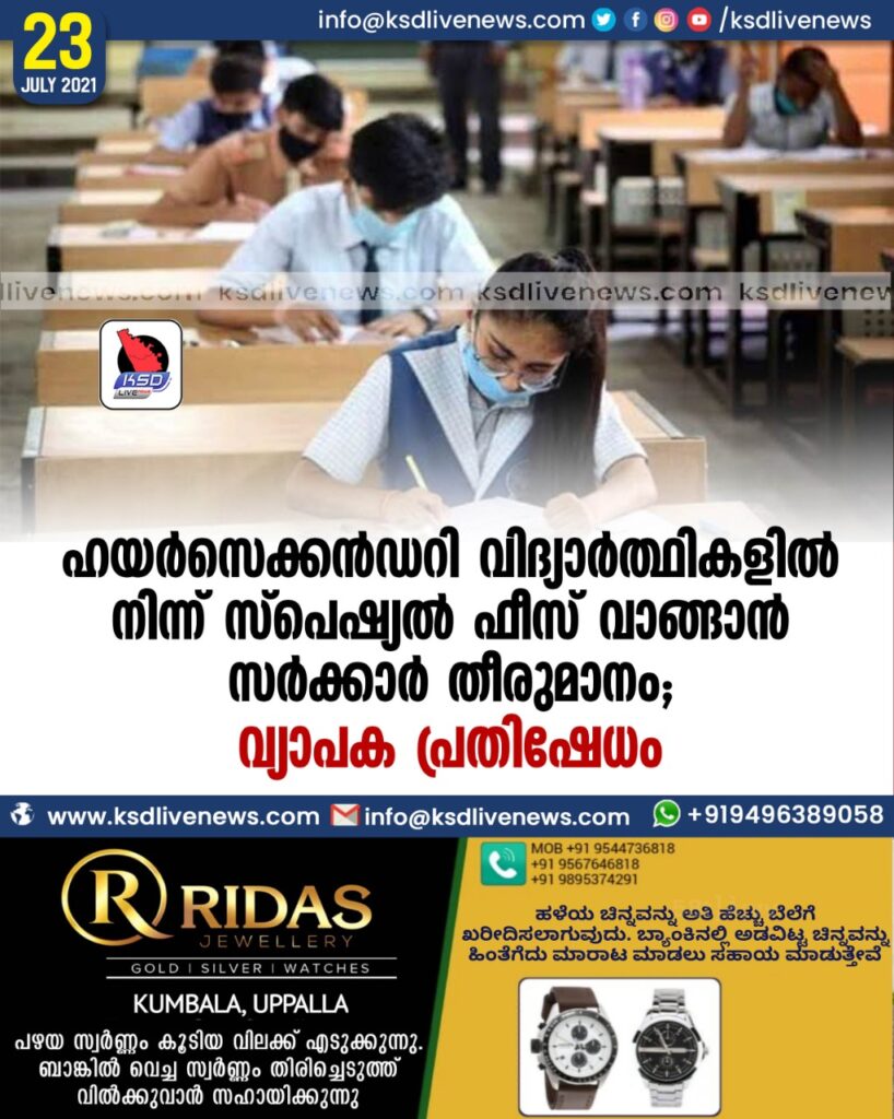 ഹയര്‍സെക്കന്‍ഡറി വിദ്യാര്‍ത്ഥികളില്‍ നിന്ന് സ്‌പെഷ്യല്‍ ഫീസ് വാങ്ങാന്‍ സര്‍ക്കാര്‍ തീരുമാനം; വ്യാപക പ്രതിഷേധം