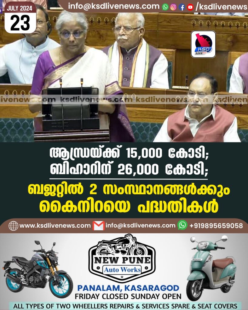 ആന്ധ്രയ്ക്ക് 15,000 കോടി, ബിഹാറിന് 26,000 കോടി; ബജറ്റിൽ 2 സംസ്ഥാനങ്ങൾക്കും കൈനിറയെ പദ്ധതികൾ