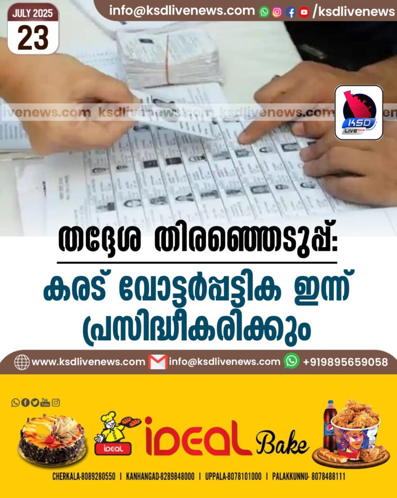 തദ്ദേശ തിരഞ്ഞെടുപ്പ്; കരട് വോട്ടര്‍പ്പട്ടിക ഇന്ന് പ്രസിദ്ധീകരിക്കും
