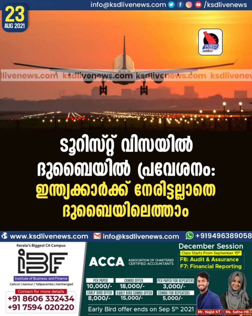 ഇന്ത്യന് പാസ്പോര്ട്ടുള്ള യാത്രക്കാര്ക്ക് ടൂറിസ്റ്റ് വിസയില് ദുബൈയിലേക്ക് വരാം. എന്നാല് 14 ദിവസത്തിനിടയില് ഇന്ത്യയില് സന്ദര്ശനം നടത്താത്തവര്ക്കാണ് യാത്ര ചെയ്യാന് അനുമതി. ഇന്ത്യയില് നിന്ന് അധികം വൈകാതെ നേരിട്ട് ടൂറിസ്റ്റ് വിസയില് യു.എ.ഇയില് എത്താന് കഴിയും എന്ന പ്രതീക്ഷയിലാണ് ആയിരങ്ങള്.
