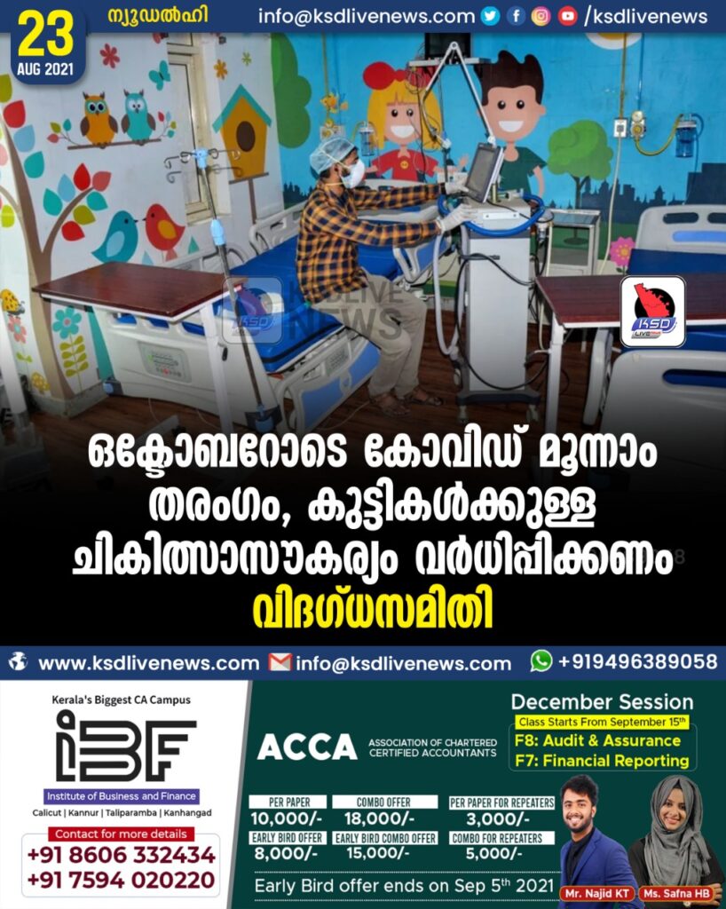 ഒക്ടോബറോടെ കോവിഡ് മൂന്നാം തരംഗം, കുട്ടികള്ക്കുള്ള ചികിത്സാസൗകര്യം വര്ധിപ്പിക്കണം- വിദഗ്ധസമിതി