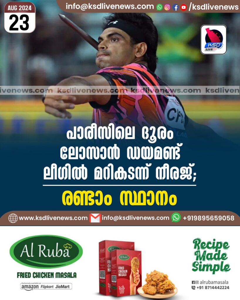 പാരീസിലെ ദൂരം ലോസാന് ഡയമണ്ട് ലീഗില് മറികടന്ന് നീരജ്; രണ്ടാം സ്ഥാനം