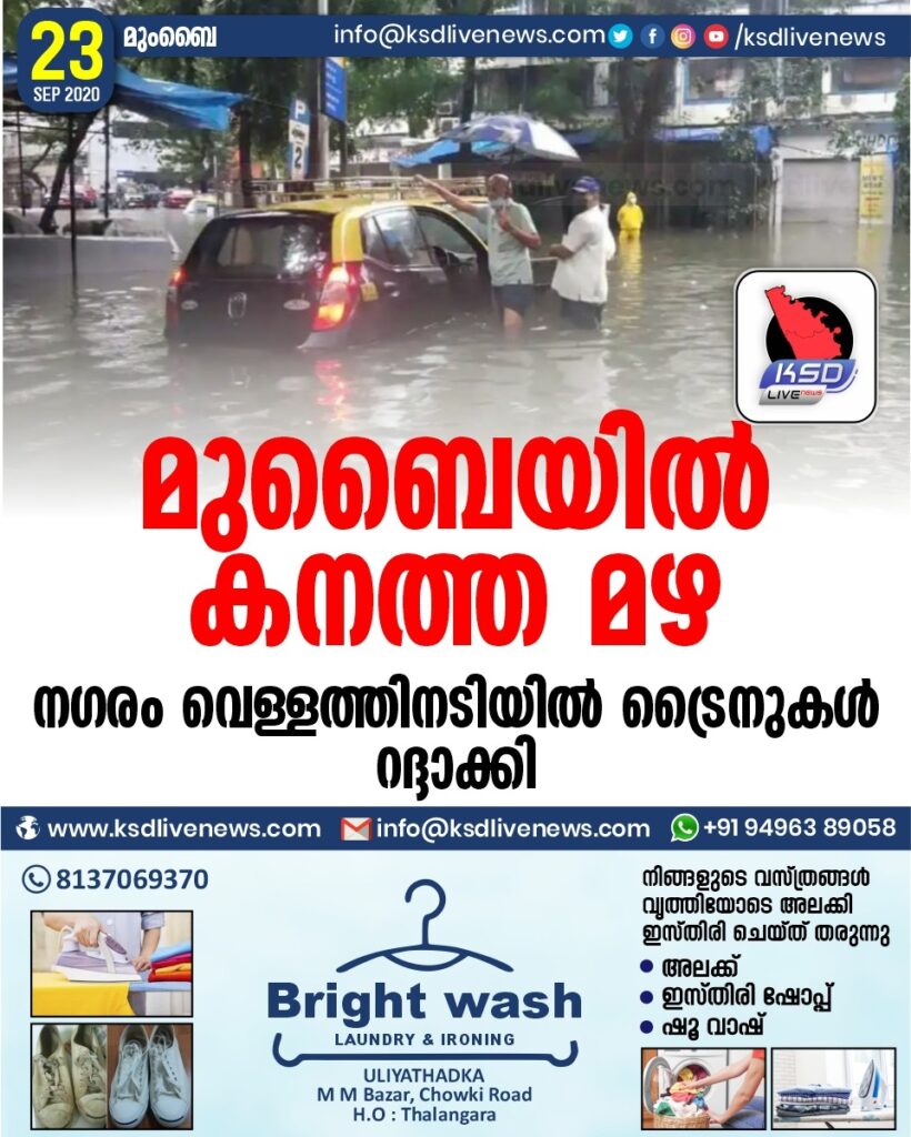 മുബൈയിൽ കനത്ത മഴ : നഗരം വെള്ളത്തിനടിയിൽ ട്രൈനുകൾ റദ്ദാക്കി