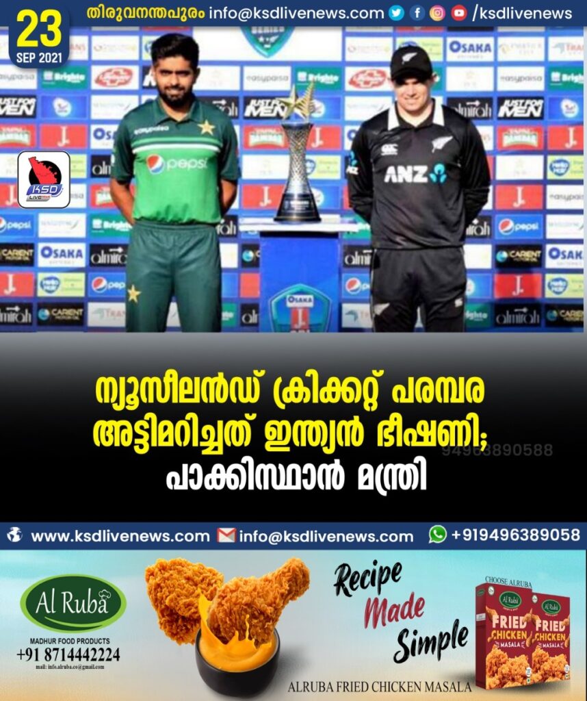 ന്യൂസീലൻഡ് ക്രിക്കറ്റ് പരമ്പര അട്ടിമറിച്ചത് ഇന്ത്യൻ ഭീഷണി: പാക്കിസ്ഥാൻ മന്ത്രി