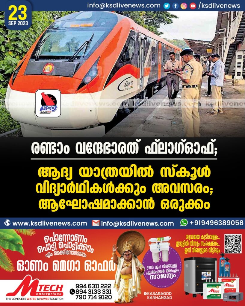 രണ്ടാം വന്ദേഭാരത് ഫ്ലാഗ്ഓഫ്; ആദ്യ യാത്രയിൽ സ്കൂൾ വിദ്യാർഥികൾക്കും അവസരം: ആഘോഷമാക്കാൻ ഒരുക്കം