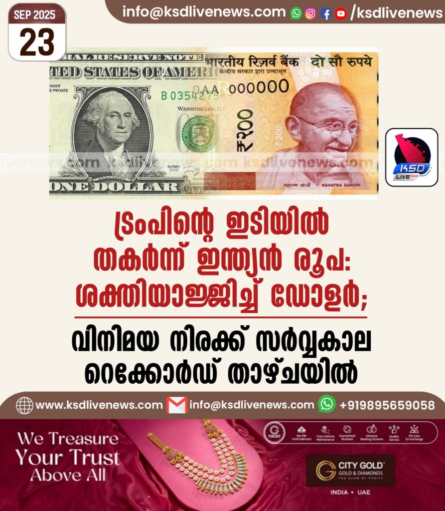 ട്രംപിന്റെ ഇടിയിൽ തകർന്ന് ഇന്ത്യൻ രൂപ: ശക്തിയാജ്ജിച്ച് ഡോളർ; വിനിമയ നിരക്ക് സർവ്വകാല റെക്കോർഡ് താഴ്ചയിൽ