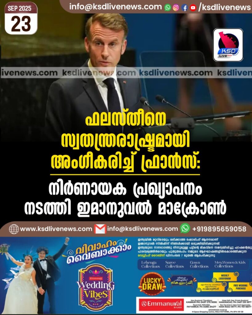 ഫലസ്തീനെ സ്വതന്ത്രരാഷ്ട്രമായി അംഗീകരിച്ച് ഫ്രാൻസ്: നിര്ണായക പ്രഖ്യാപനം നടത്തി ഇമാനുവല് മാക്രോണ്/വീഡിയോ
