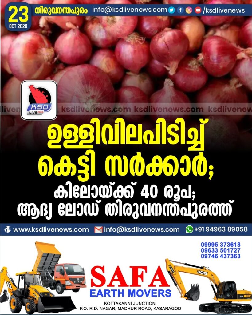 ഉള്ളിവിലപിടിച്ച് കെട്ടി സർക്കാർ ; കിലോയ്ക്ക് 40 രൂപ ; ആദ്യ ലോഡ് തിരുവനന്തപുരത്ത്