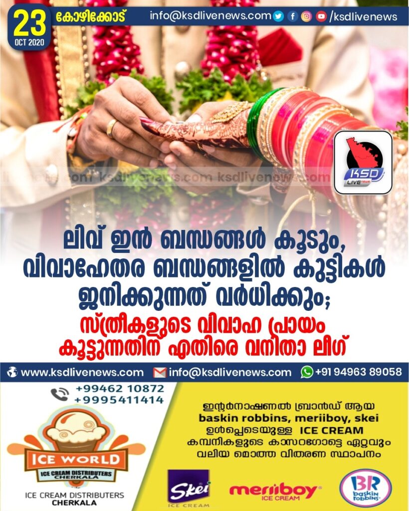 ലിവ് ഇൻ ബന്ധങ്ങൾ കൂടും , വിവാഹേതര ബന്ധങ്ങളിൽ കുട്ടികൾ ജനിക്കുന്നത് വർധിക്കും ; സ്ത്രീകളുടെ വിവാഹ പ്രായം കൂട്ടുന്നതിന് എതിരെ വനിതാ ലീഗ്