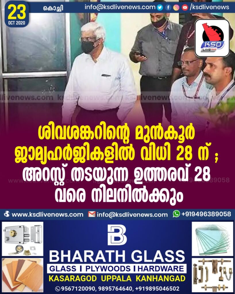 ശിവശങ്കറിന്റെ മുന്‍കൂര്‍ ജാമ്യഹര്‍ജികളില്‍ വിധി 28 ന് ; അറസ്റ്റ് തടയുന്ന ഉത്തരവ് 28 വരെ നിലനിൽക്കും