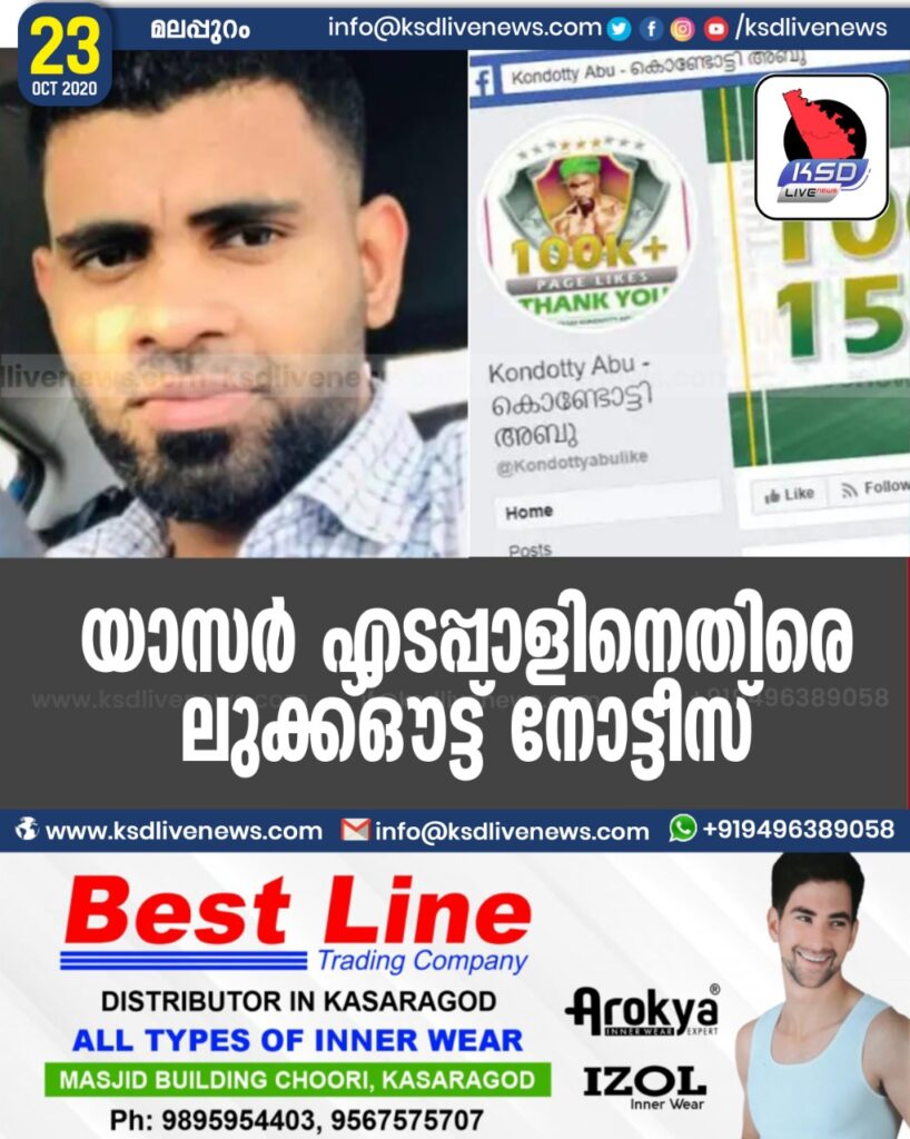 യാസർ എടപ്പാളിനെതിരെ ലുക്ക്ഔട്ട് നോട്ടീസ്