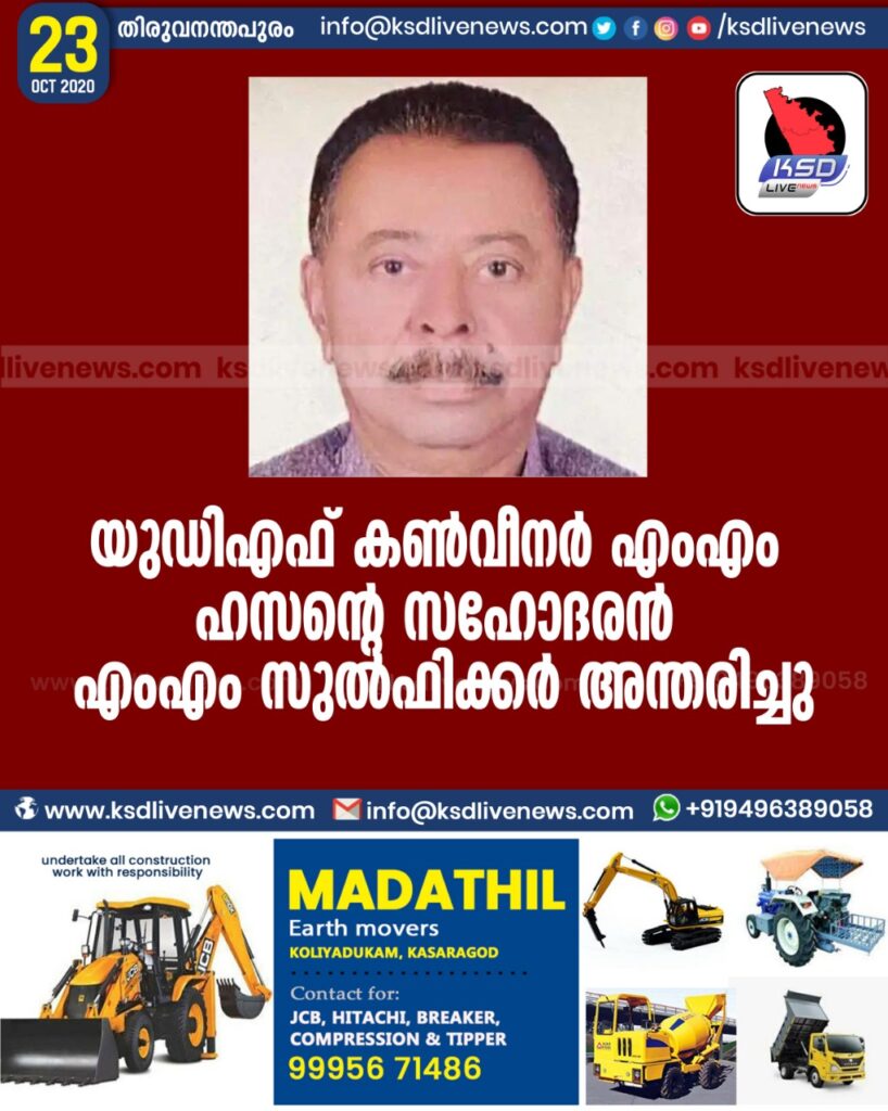യുഡിഎഫ് കൺവീനർ എംഎം ഹസന്റെ സഹോദരൻ എംഎം സുൽഫിക്കർ അന്തരിച്ചു