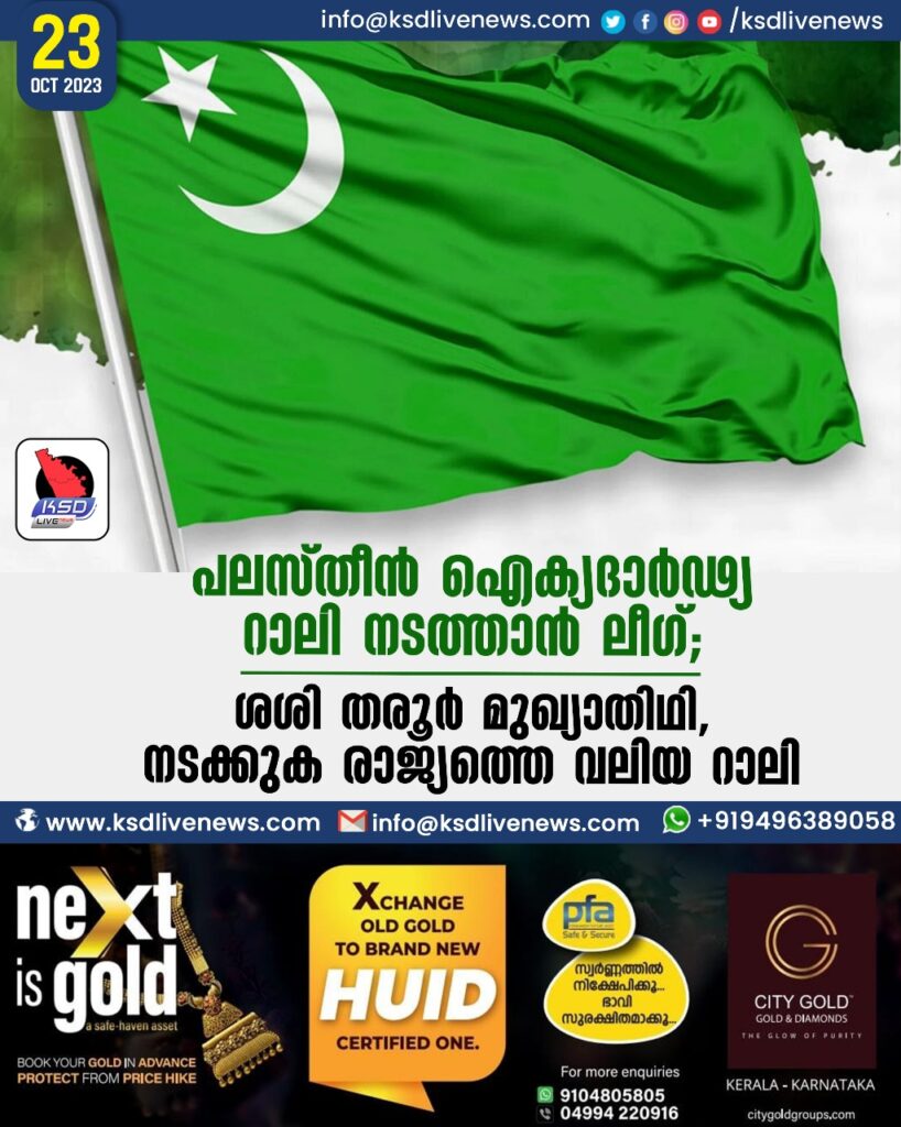 പലസ്തീന് ഐക്യദാര്ഡ്യ റാലി നടത്താന് ലീഗ്; ശശി തരൂര് മുഖ്യാതിഥി, നടക്കുക രാജ്യത്തെ വലിയ റാലി