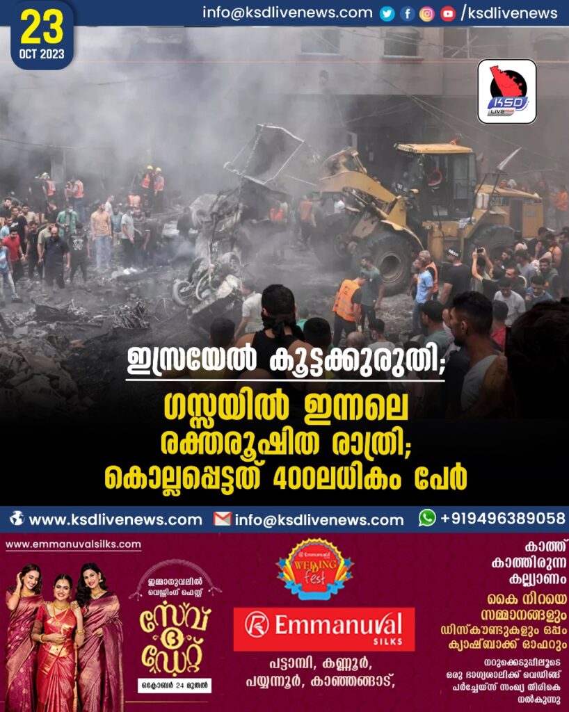 ഇസ്രയേൽ കൂട്ടക്കുരുതി; ഗസ്സയില്‍ ഇന്നലെ രക്തരൂഷിത രാത്രി; കൊല്ലപ്പെട്ടത് 400ലധികം പേര്‍