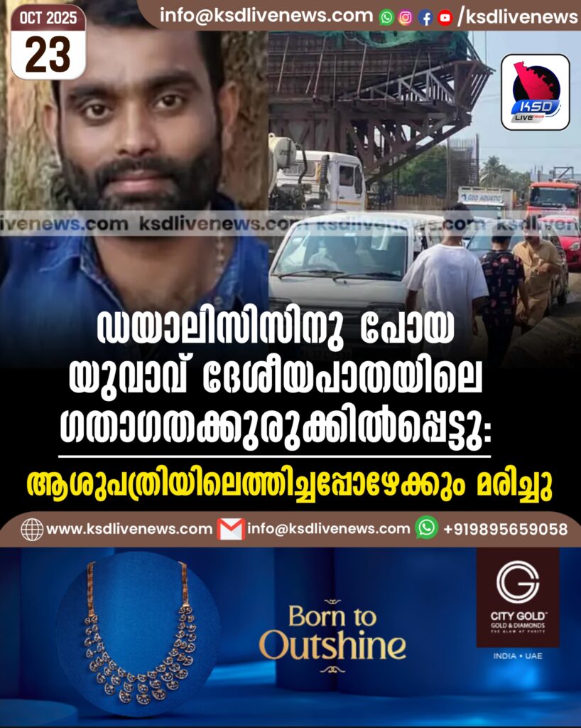 ഡയാലിസിസിനു പോയ യുവാവ് ദേശീയപാതയിലെ ഗതാഗതക്കുരുക്കില്പ്പെട്ടു: ആശുപത്രിയിലെത്തിച്ചപ്പോഴേക്കും മരിച്ചു