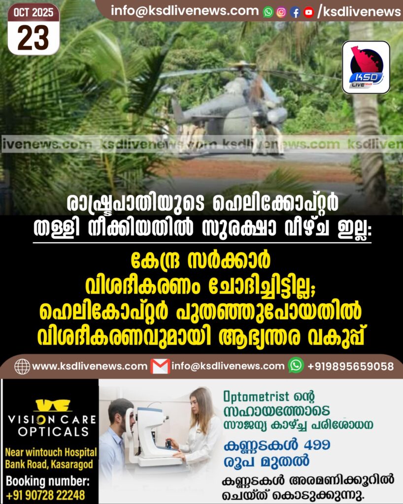 രാഷ്ട്രപാതിയുടെ ഹെലിക്കോപ്റ്റർ തള്ളി നീക്കിയതിൽ സുരക്ഷാ വീഴ്ച ഇല്ല, കേന്ദ്ര സര്ക്കാർ വിശദീകരണം ചോദിച്ചിട്ടില്ല; ഹെലികോപ്റ്റർ പുതഞ്ഞുപോയതിൽ വിശദീകരണവുമായി ആഭ്യന്തര വകുപ്പ്