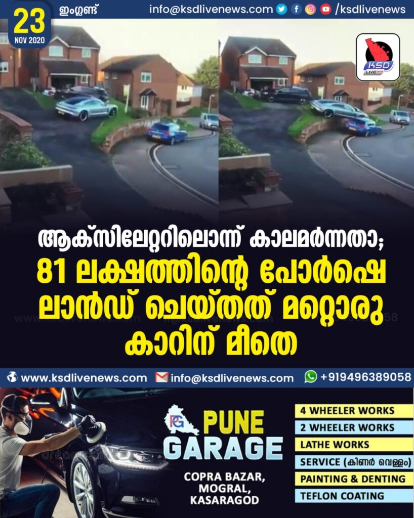 ആക്സിലേറ്ററിലൊന്ന് കാലമര്ന്നതാ; 81 ലക്ഷത്തിന്റെ പോര്ഷെ ലാന്ഡ് ചെയ്തത് മറ്റൊരു കാറിന് മീതെ