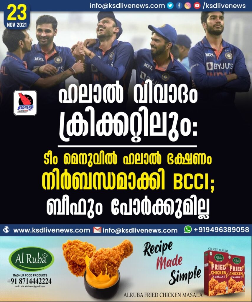 ഹലാല് വിവാദം ക്രിക്കറ്റിലും: ടീം മെനുവില് ഹലാല്ഭക്ഷണം നിര്ബന്ധമാക്കി BCCI; ബീഫും പോര്ക്കുമില്ല