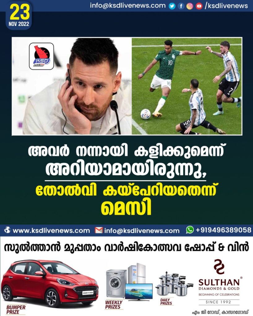 ദോഹ : സൗദി അറേബ്യയ്ക്കെതിരായ തോല്വി കയ്പുനിറഞ്ഞതാണെന്ന് ലയണൽ മെസി. തോല്വി അപ്രതീക്ഷിതമായിരുന്നു. പിഴവുകള് തിരുത്തി അര്ജന്റീന തിരിച്ചുവരും. അഞ്ചുമിനിറ്റില് ഉണ്ടായ പിഴവിലാണ് കളി കൈവിട്ടുപോയത്. പിന്നീട് ടീമിന് ഒത്തൊരുമയോടെ തിരിച്ചുവരാനായില്ല. അര്ജന്റീന കരുത്തോടെ തിരിച്ചുവരുമെന്നും മെസി പറഞ്ഞു.