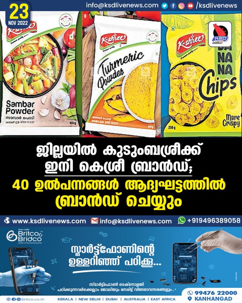 ജില്ലയിൽ കുടുംബശ്രീക്ക് ഇനി കെശ്രീ ബ്രാൻഡ്; 40 ഉൽപന്നങ്ങൾ ആദ്യ ഘട്ടത്തിൽ ബ്രാൻഡ് ചെയ്യും