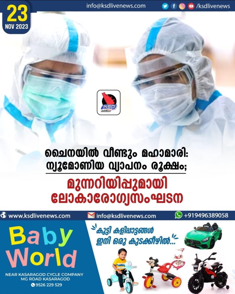 ചൈനയിൽ ന്യൂമോണിയ വ്യാപനം രൂക്ഷം; മുന്നറിയിപ്പുമായി ലോകാരോഗ്യസംഘടന