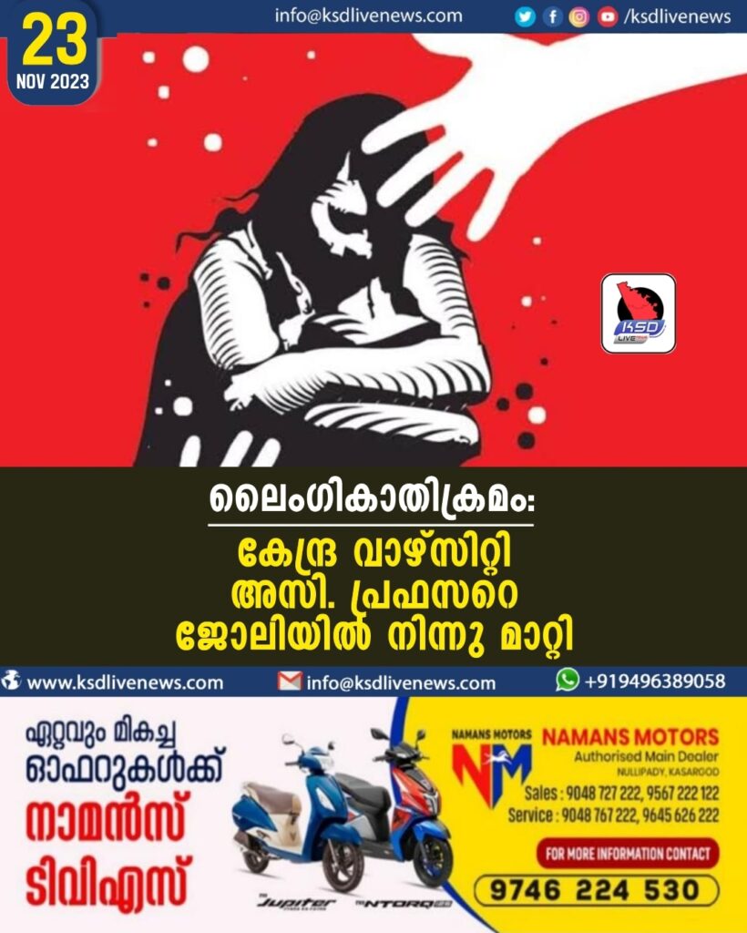 ലൈംഗികാതിക്രമം: കേന്ദ്ര വാഴ്സിറ്റി അസി. പ്രഫസറെ ജോലിയിൽ നിന്നു മാറ്റി