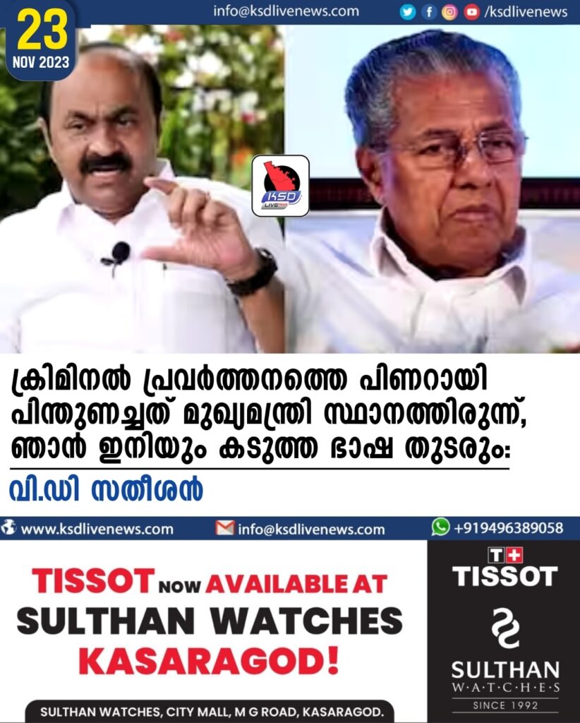 ക്രിമിനൽ പ്രവർത്തനത്തെ പിണറായി പിന്തുണച്ചത് മുഖ്യമന്ത്രി സ്ഥാനത്തിരുന്ന്, ഞാൻ ഇനിയും കടുത്ത ഭാഷ തുടരും: സതീശൻ