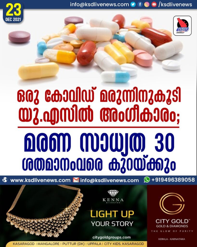 ഒരു കോവിഡ് മരുന്നിനുകൂടി യു.എസില് അംഗീകാരം; മരണ സാധ്യത 30 ശതമാനംവരെ കുറയ്ക്കും