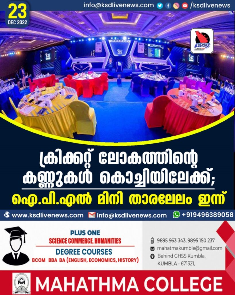 ക്രിക്കറ്റ് ലോകത്തിന്റെ കണ്ണുകള് കൊച്ചിയിലേക്ക്; ഐ.പി.എല് മിനി താരലേലം ഇന്ന്